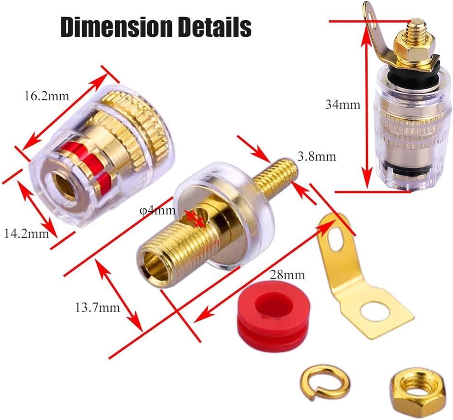 Speaker Wire Connectors20-100pcs 4MM Binding Post Connector Audio Cable Terminals, Binding Post Specification:Material: Plastic, CopperLength: 4.2cm/1.65inOuter Diameter: 1.45cm/0.57inColor: Black, Red