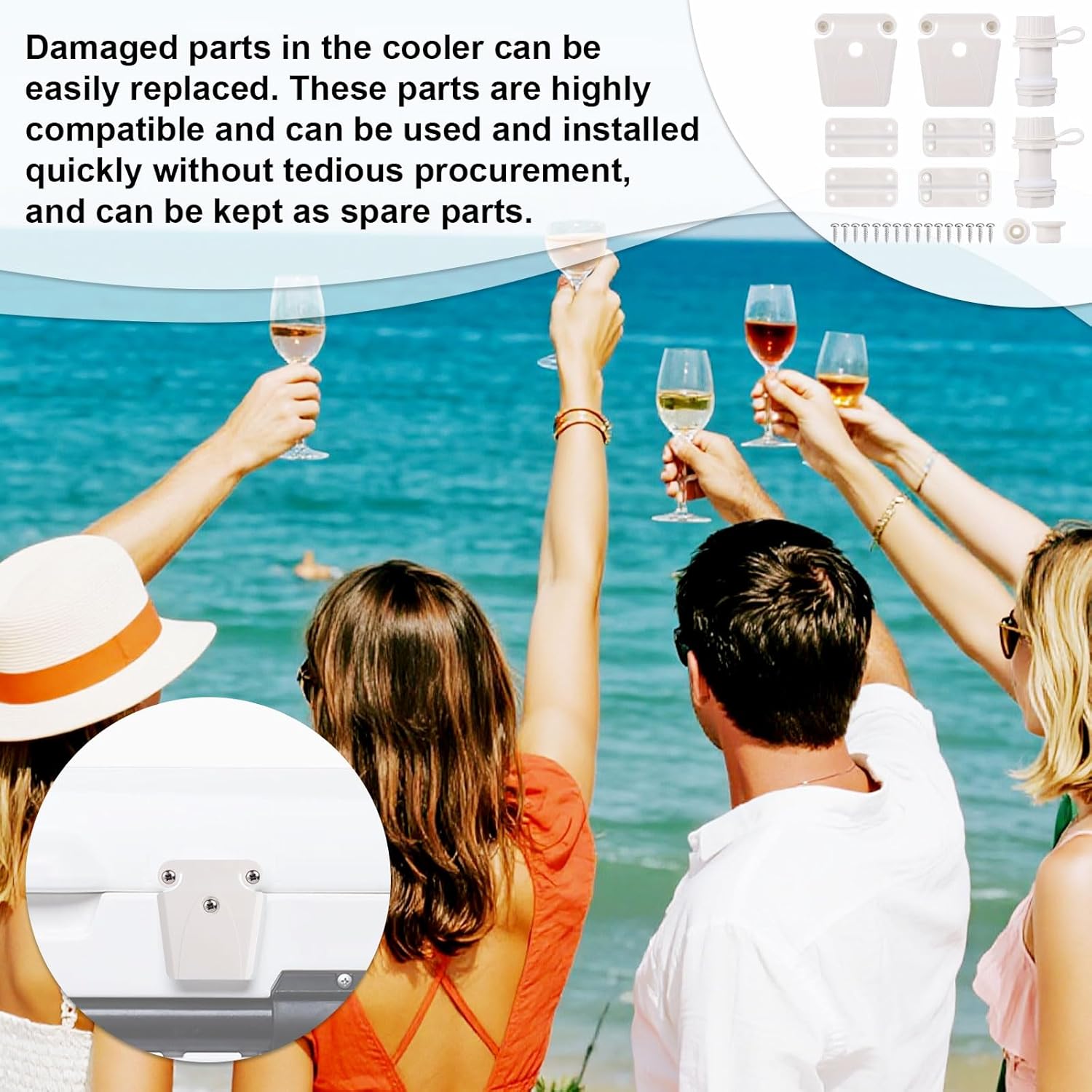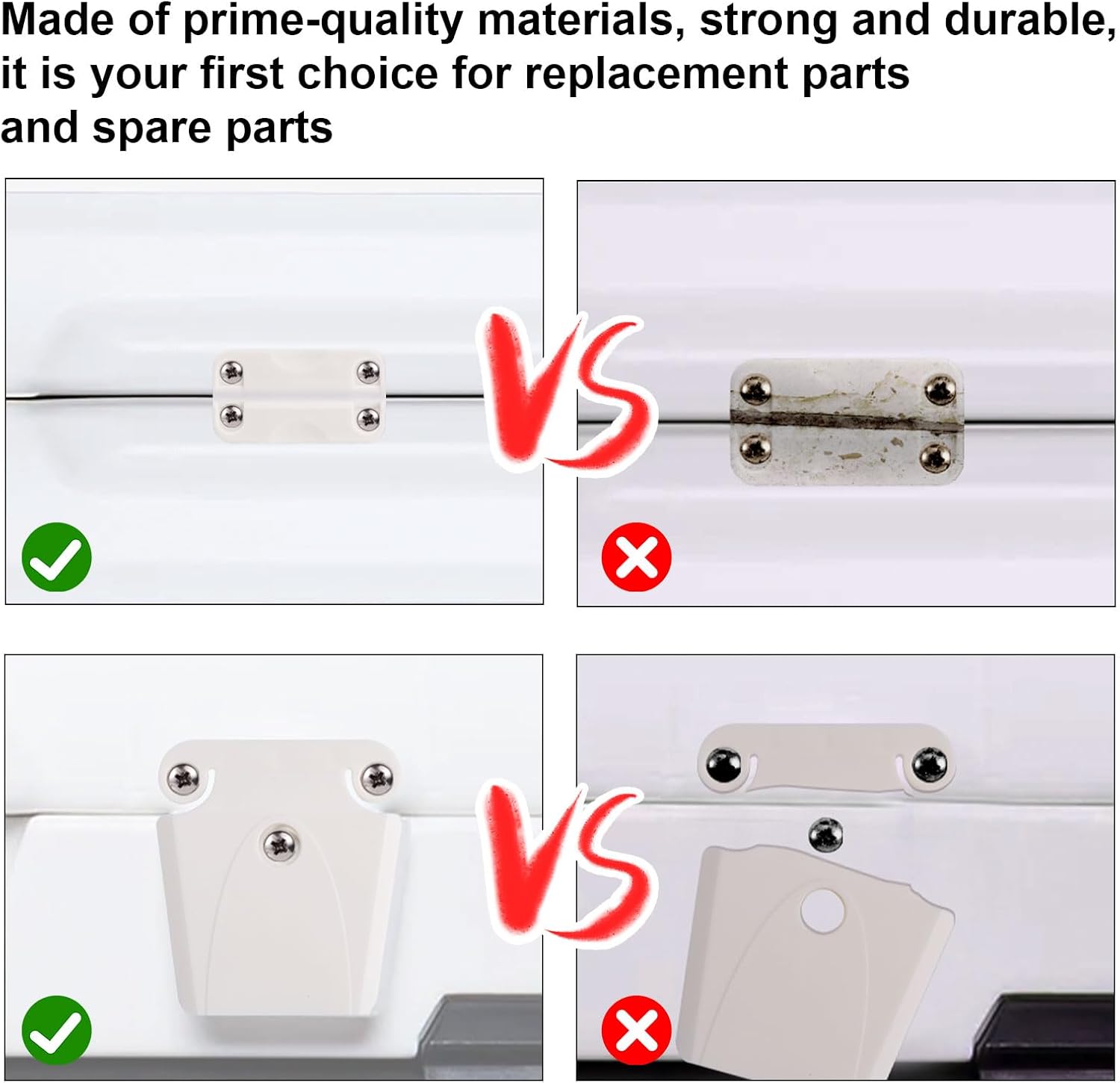 Specification: Color: white Material: plastic, stainless steel Product Size: hinge 2.36x1.3in/6x3.3cm drain plug 2.76x1.18in/7x3cm latch 2.95x2.56in/7.5x6.5cm rubber plug 0.67in/1.7cm diameter Package details: 4 x hinges 16 x screws 2 x drain plugs 2 x latches 2 x rubber plugs Note: Due to manual measurement, the size and weight may have a certain error. Due to the difference between different monitors, there may be a slight color difference existed.