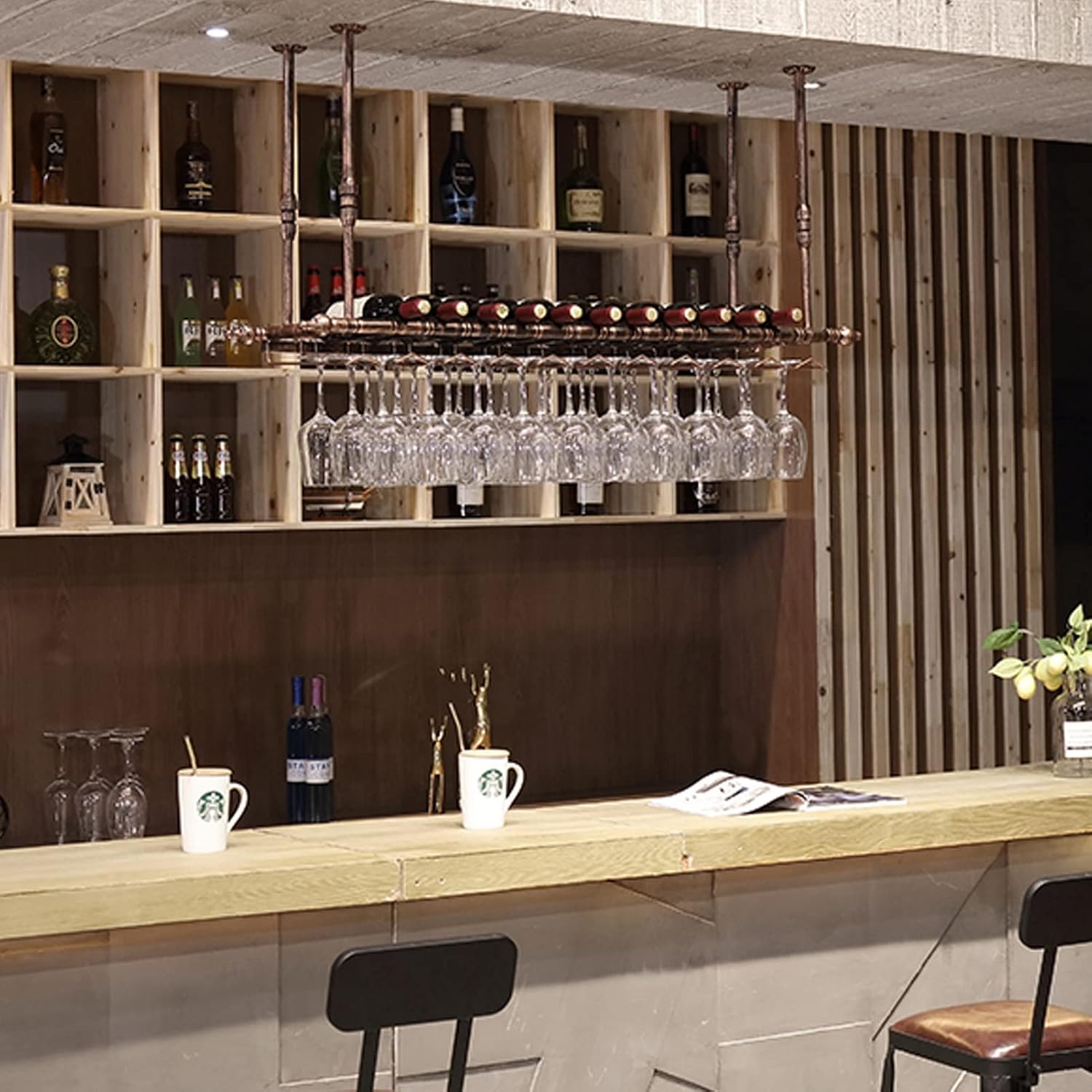 Wine Rack with Glass Holder Suitable for Any Flat Surface Area in a Pantry, Kitchen, Dining Room, Wine Cellar,Wine Cabinet,Studyor Bar.Fit to Daily Use,Entertaining, Dinner Parties, Holidays and Occasions.The Inverted Glassware Rack Helps Glasses Dry Completely. Stemware Holder While Keeping Them Separated and Preventing Dust from Settling in the Bowls.This Hanging Wine Glass Rack Set is a Great Gift Idea for Lovers, Families, Friends, or As Housewarming Gift.