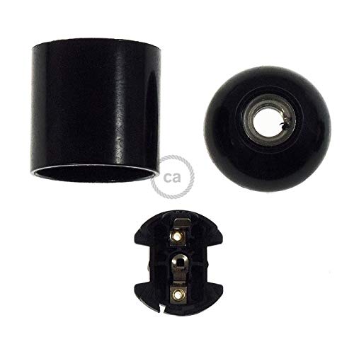 Looking for a simple socket for your lighting projects? This is your match. Our smooth E26 socket in black phenolic bakelite is perfect for connecting any E26 bulb. Black phenolic bakelite gives a vintage or antique touch. Use it in DIY projects when you want a touch of history or if you'll cover the socket with another lamp design. 100% Made in Italy.