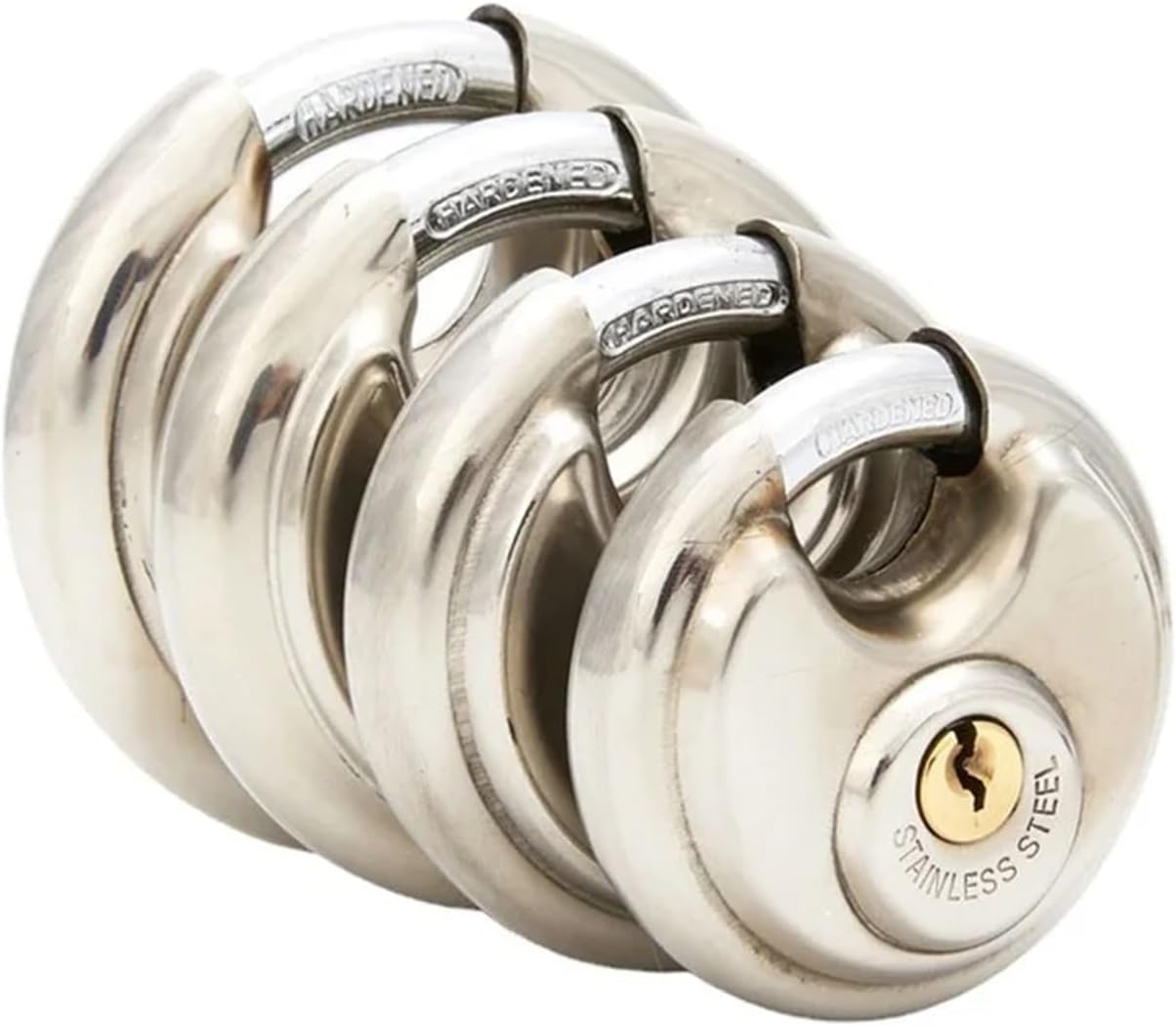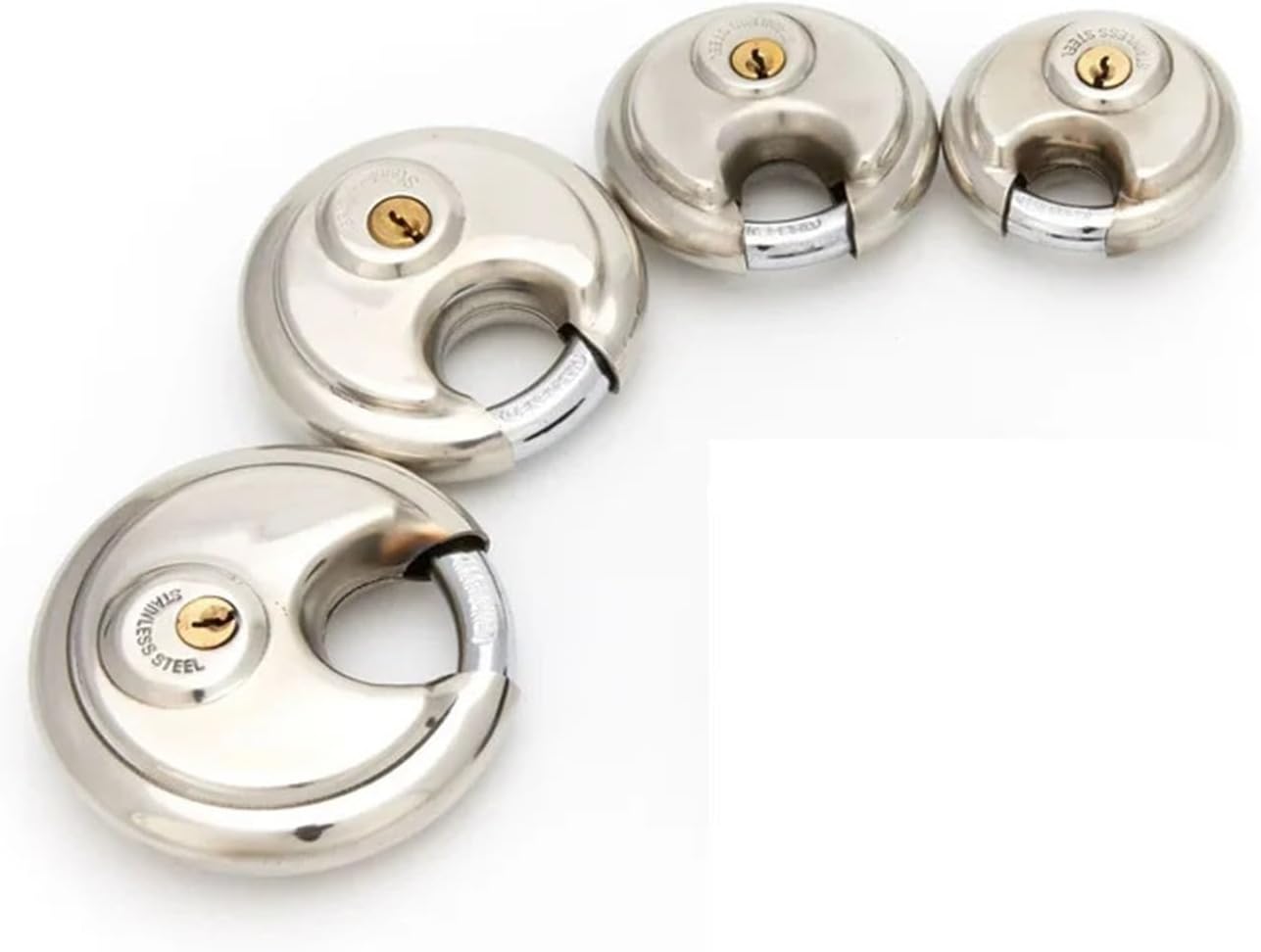 Padlocks & Hasps / Combination PadlocksMateriaal: Roestvrij StaalKleur: ZilverGrootte: 60mm 70mm 80mm 90mmZware constructie voor extra veiligheid.70mm Disc Hangslot Ronde Beugel Rvs Heavy Duty 1 ToetsenRoestvrij staal shell.Ronde taartLock magazijn deur slot met een sleutel .Roestvrij.Waterdicht.Past meest storefront poort houders.Pakket omvat:1 lock/2 keys