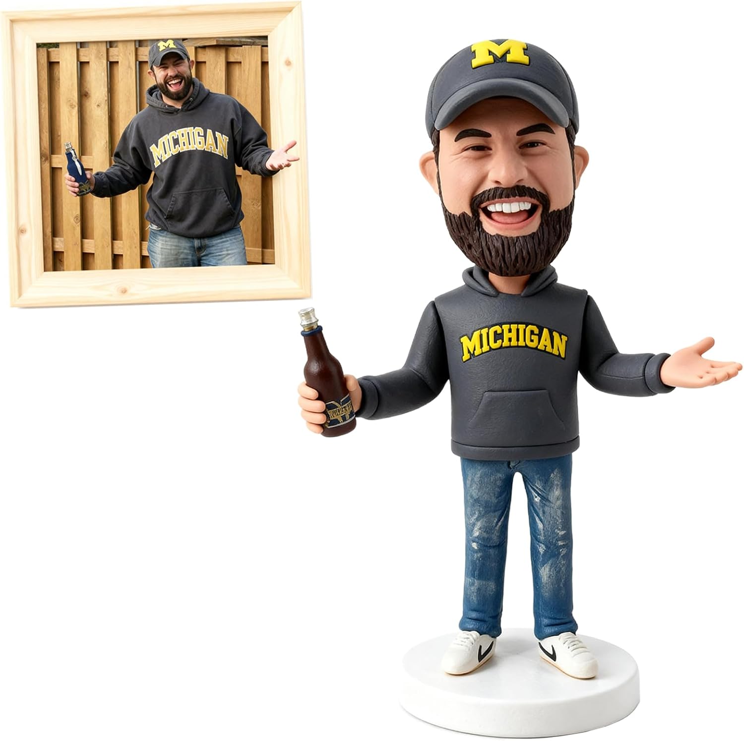 • Custom bobbleheads figures personalized: You can customise this bobblehead with any photo and any outfit. You can even add props to make it even more unique