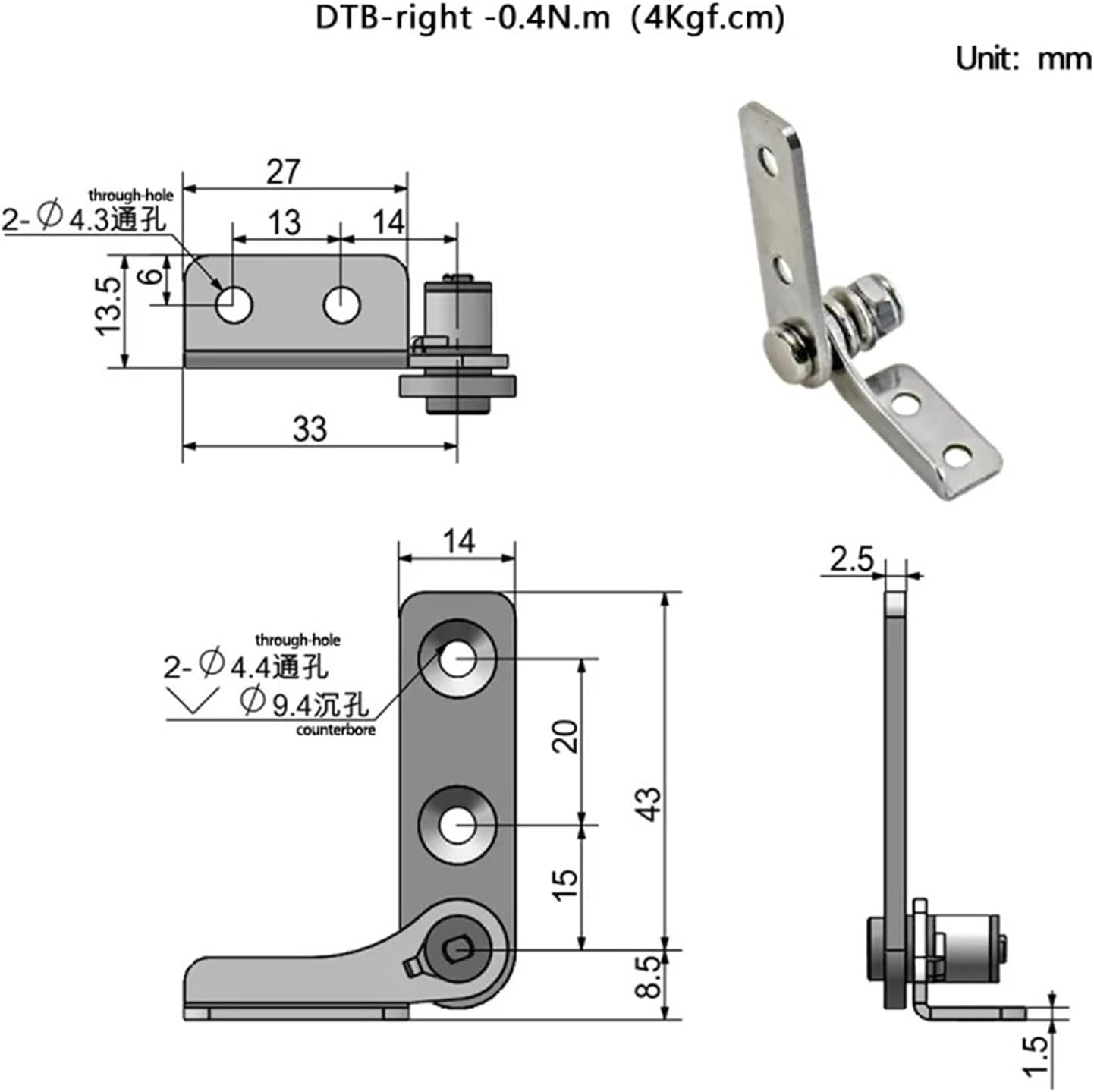 Gate HingesDamping Hinge With Adjustable Torque Stainless Steel Fittings Free Stop Function Hardware Accessories 1PcsMaterial : Stainless SteelModel Number : HingeType : Door Hinges