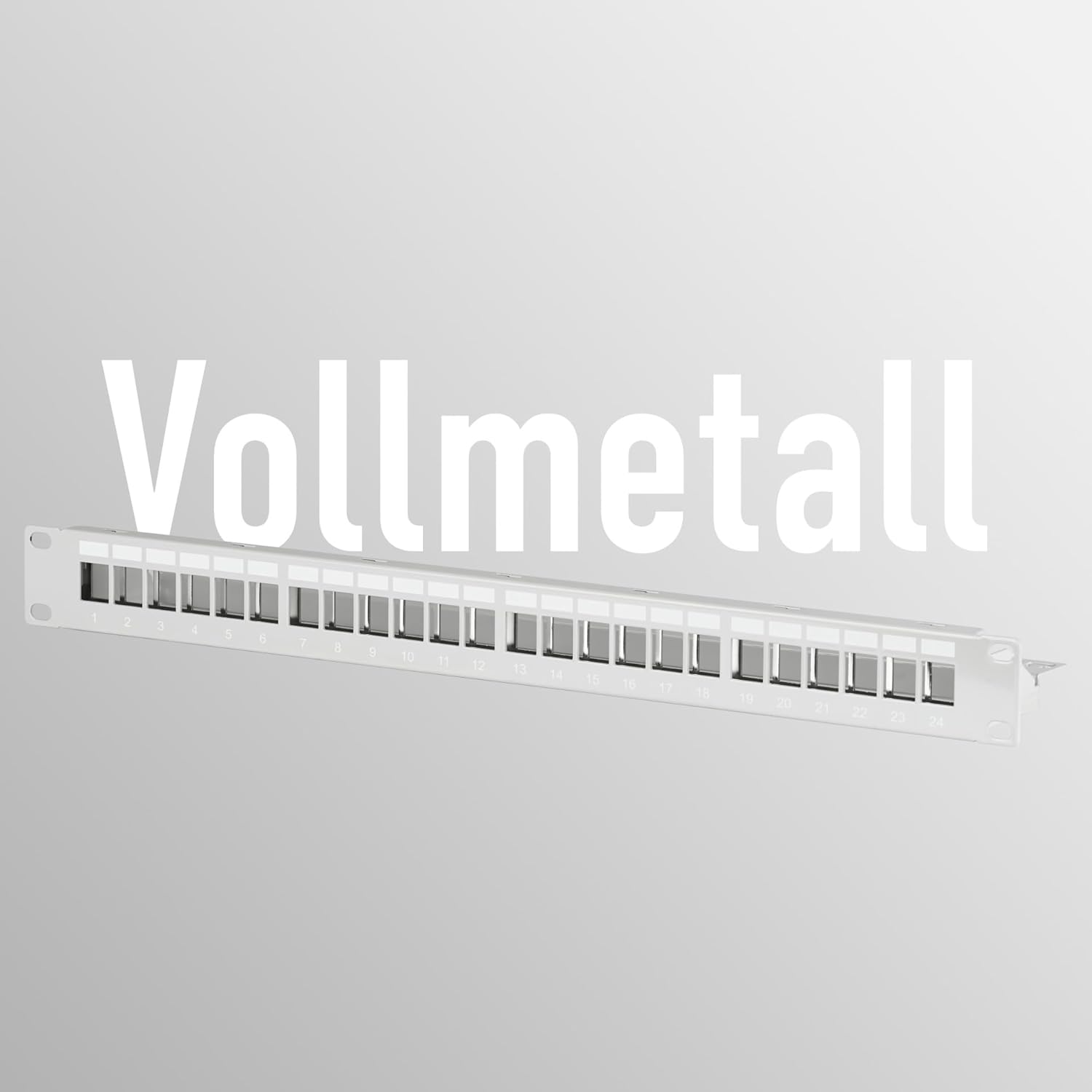 Patch panel distribution panel (grey), 19 inch, 1U, 24-port, without Keystones EFB-Elektronik patch panel: modular and practical. The high-quality, modular 19 inch patch panel distribution panel in grey colour from EFB-Elektronik allows individual and structured assembly of up to 24 keystone modules. The individual modules are mounted without tools by simply clicking into place, the ports of the patch panel are numbered accordingly. The patch panel panel fits perfectly into a 19" network, server or device cabinet where only one height unit is required. Thanks to two mounting holes on each side, the installation of the server cabinet patch panel is easy. The EFB-Elektronik 19 inch patch panel is made of grey, sturdy sheet steel, the surfaces are robust and durable thanks to a scratch-resistant powder coating. What are the advantages of the 19 inch patch panels from EFB-Elektronik? Patch panels are an important part of the IT infrastructure. The use of a 19 inch patch panel from EFB-Elektronik brings many advantages, so the investment is worth it. Key benefits of using patch panels include: • Scalability: Once a patch panel is installed, you can easily add new devices without having to run new cables throughout. • Less clutter: Patch panels are typically located closer to the actual devices. This makes it possible to use a shorter patch cable. • Cost-effective: EFB-Elektronik patch panels offer high quality at a low price • Lower cable costs: With a patch panel you can use shorter cables and save costs. • Easier maintenance: If you need to run a test cable, test a connector, or perform other common maintenance, you can do it faster and easier.