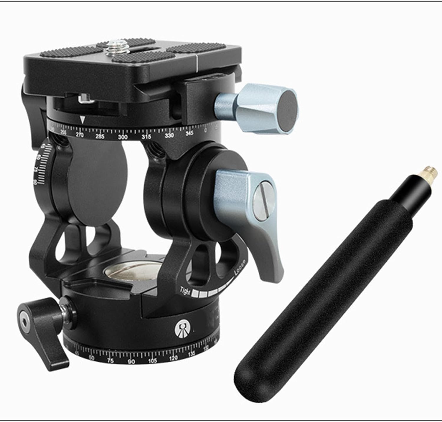 Geavonyg Double Panoramic Tripod Fluid Head Small Pan Tilt Head Quick Release Plate And Handle For DSLR And Small Video CamerasFeatures:smooth and precise movements with the Double Panoramic Tripod Fluid Head, featuring a 720 degree panoramic rotation and +90º/ 80º tilt for versatiled viewing.From aircraft grade aluminum, this small tripod fluid head is lightweighted yet strong, ensuring durability and stability for your photography needs.For photographers and videographers using DSLR cameras, or small video cameras, this fluid head offering seamlessly compatibility with various camera types.Perfectly for capturing dynamic scene, whether you're filming landscapes, event, or creating content, this tripod head enhances your creative possibilities.The detachable handle with slip proof grip provides flexibility in setups, allowing left or right handed operating for optimaled control during overhead or low angled shots.Specifications:Item:Tripod Fluid HeadHandle length about 137mm/5.39inComponent:MetalSuppport +90º/-80º tilt and 720° panoramic rotationPackage Includes:1PC Tripod Fluid HeadNote:Please allow 1-2cm errors due to manual measurement. Due to the differences between different monitors, the picture may not reflect the actual color.