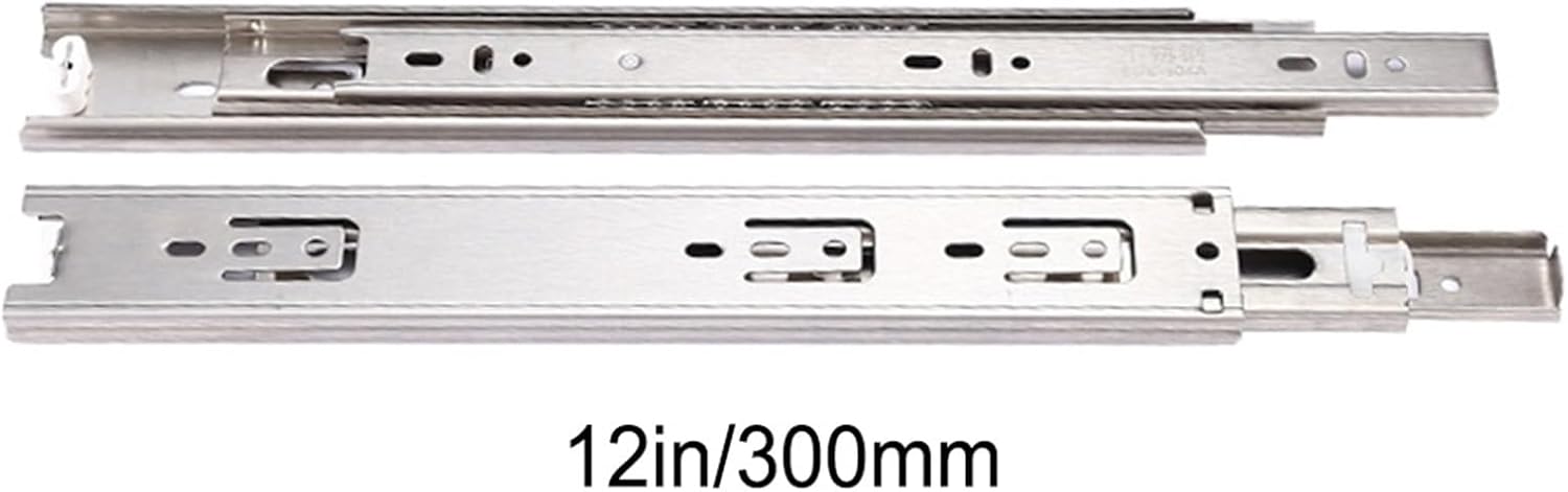 1. Excellent wear and impact resistance, capable of withstanding heavy storage loads without deformation.2. Drawers extend fully for convenient storage.3. The slides can be used in cabinets, industrial drawers, vending machines, and more.Features:* Made of high quality cold rolled steel plate electroplating.* Steel ball bearings, very smooth and quiet.* The lever is disconnected to facilitate drawer disassembly.Specifications:* Material: quenched cold rolled steel* Length :10", 12", 14", 16", 18", 20"* Load capacity :100lb* Expansion :3 fold full expansion bearing* Installation type: side mountThe package includes:1 pair of drawer slides