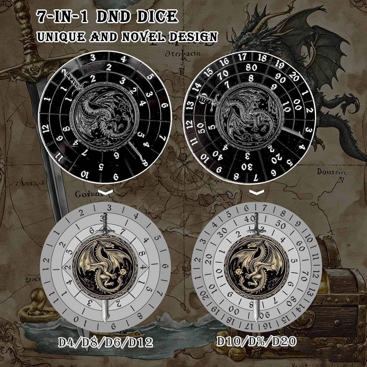 You will get one set of resin sharp edge dice with box and one set of dragon sword metal spinner dice with leather bag and box.