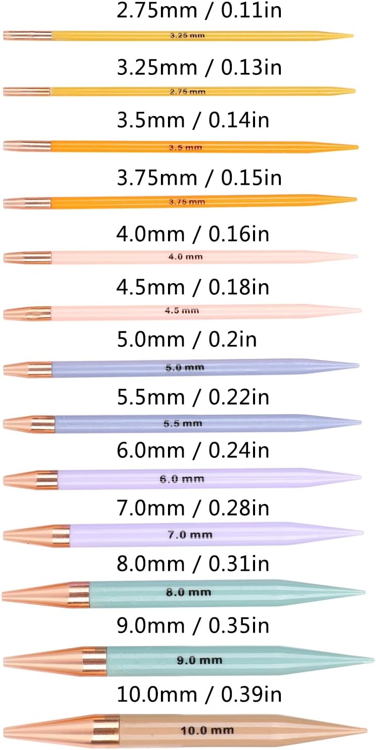 [All in one] With these crochet hooks, you can easily make socks, sweaters, hats and more. [Premium Quality] Made of durable materials for long-lasting use without deformation. [High Versatility] This crochet hook set offers a wide range of needle combinations for different knitting projects. [Ideal for housewives] For knitting enthusiasts as all tools remain protected and easily accessible. [Organized Storage] In the stylish PU bag all needles and accessories are well organized. Specifications: Item Type: Crochet Hook Set Needle size: approx. . 2.75mm/0.11inch 3.25mm/0.13inch 3.5mm/0.14inch 3.75mm/0.15inch 4. >4.5mm/0.18 5mm/0.2 5.5mm/0.22 6mm/0.24 7mm/0.28 8mm/0.31 9mm/0.35 10mm/0.39inch 4 circumferential length of the steel rope: approx. 32 cm/12.6 inches 38 cm/15 inches 42.5 cm/16.7 inches 55 cm/21.7 inches (can be disassembled and assembled by ) Packing list: 26 x Sweater Stitch 4 x circumferential steel wire. 4 x Positioning Buttons 1 x Tool Sticker 4 x connecting tool 1 x PU bag. Note: Please note that the sweater stitch color of this product is randomly selected. Please make sure you do not mind before ordering.