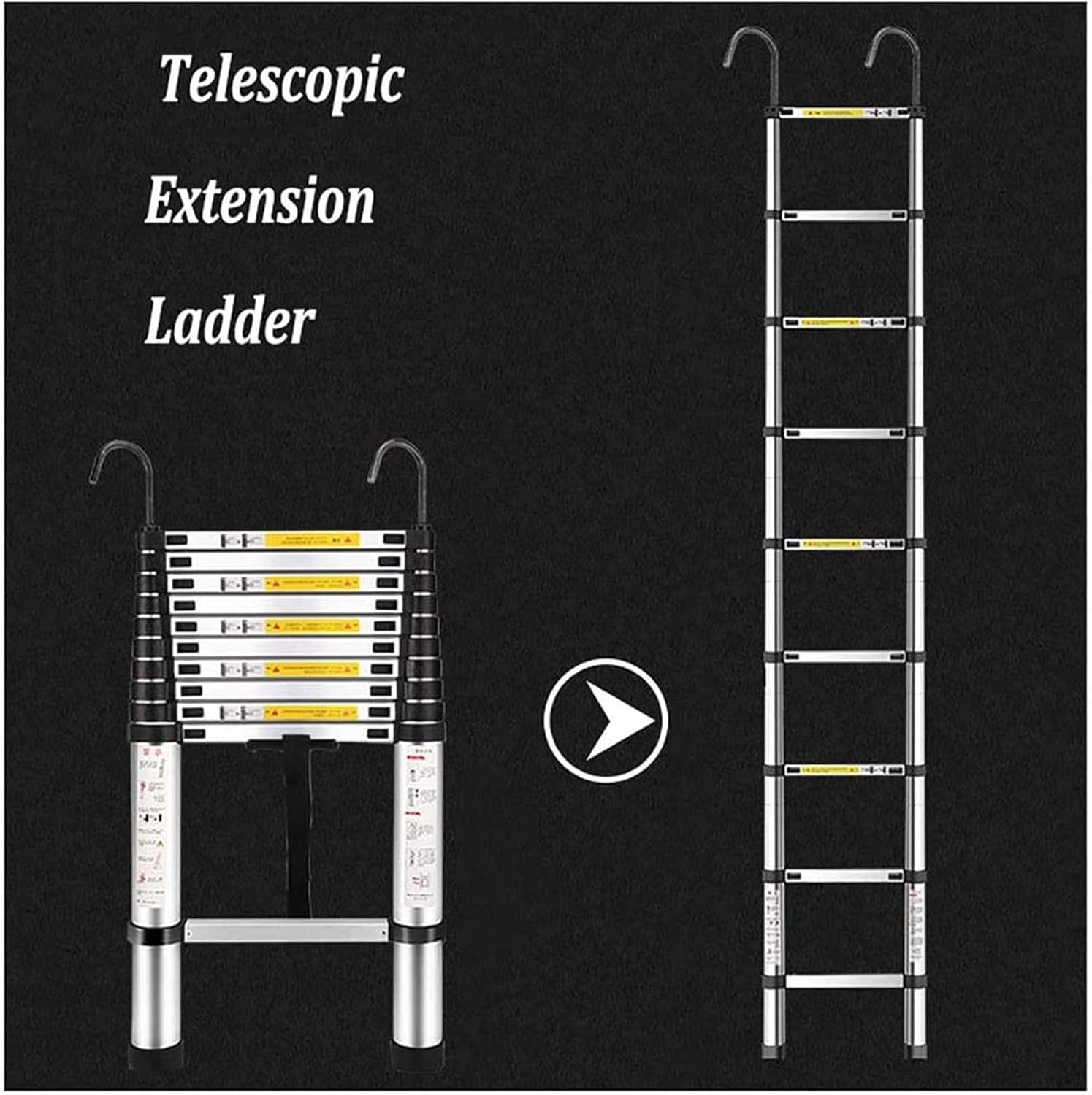 Ladderscopiladder with Stabilizer Bar and Detachable Hook, Aluminum Portable Extendableladder,for Climb Home Builders Attic Work Place Emergency Use, 330Lb Capacity/2.0M/6.6Ft