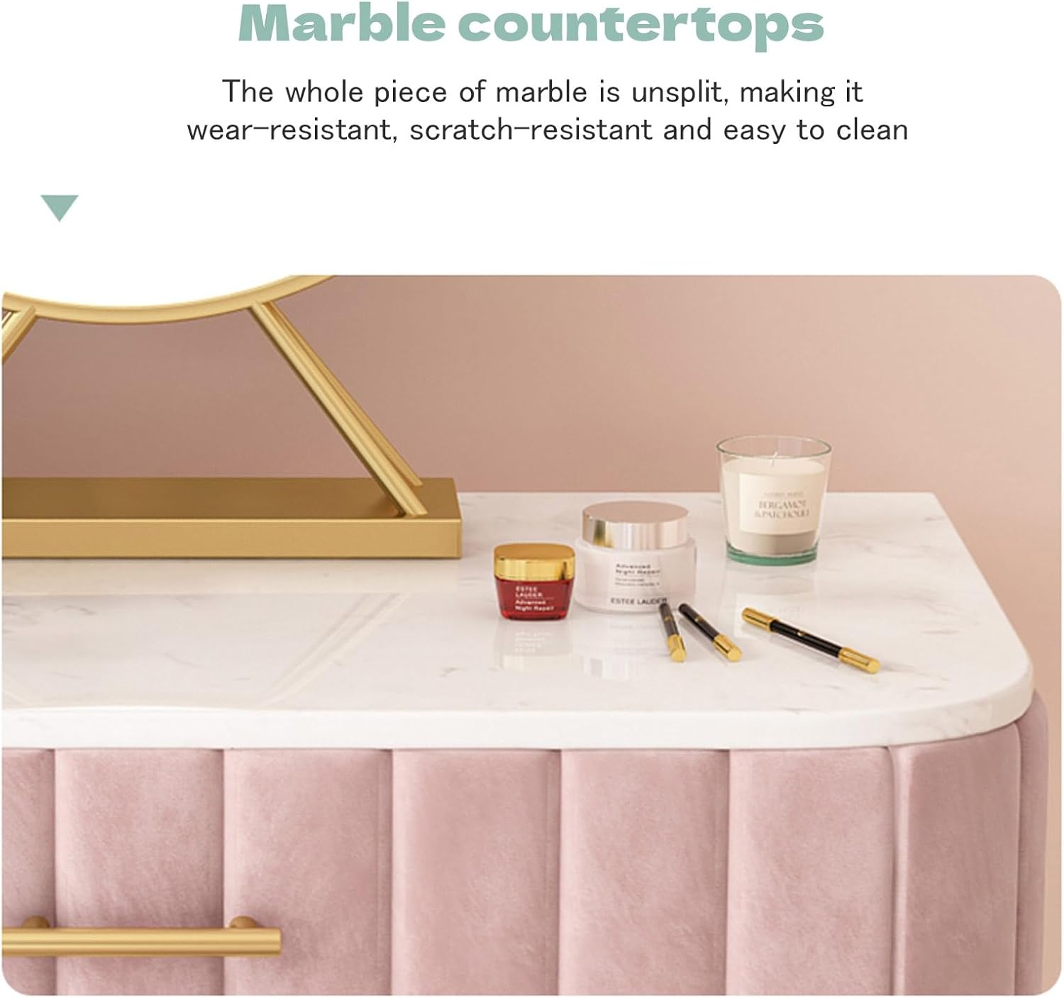 With a beautiful mirror, modern appearance and perfect size, this dressing table set is a great gift for your wife, daughter or grandchildren.Name: Dressing TableColor: Pink, Green, GraySize: 50x40x40cm, 60x40x40cm, 80x40x40cmMaterial: Marble + Metal FrameStyle: ModernWith Mirror: YesWith Drawer: YesPackage Contents:1x Dressing Table1x Mirror