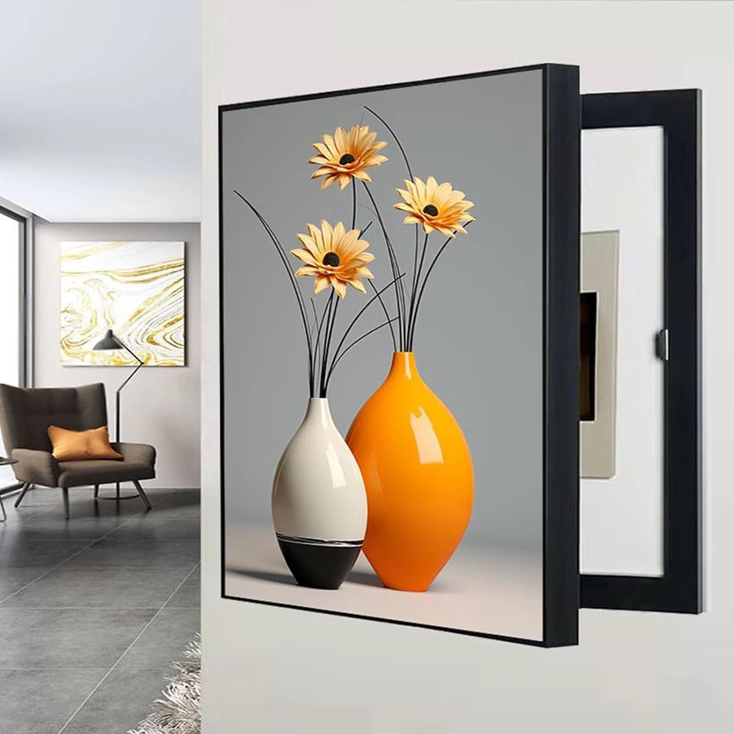 Modern artistic meter box decorative painting not only protects the switchboard from dirt and daily wear and tear. It also adds beauty to your home and is a practical solution. Please measure your meter box size before purchasingName: Meter box decorative painting Style: modern and simpleStyle: clamshell styleFrame color: BlackPicture Material: Crystal Porcelain PaintingFrame Material: Aluminum alloyMounting : ScrewProduct Size: Width x HeightCan Accommodated Size: Length - 10 cm, width - 10 cmSuitable for power distribution decorative panels, showcase decoration, murals, paint boxes, main switchboards, meter boxes, etc. It is the protector of your home meter boxThe length and width of the decorative painting should be at least 10cm/3.9 inches larger than the meter boxPackage included:1x Meter Box Decorative Painting + corresponding accessories