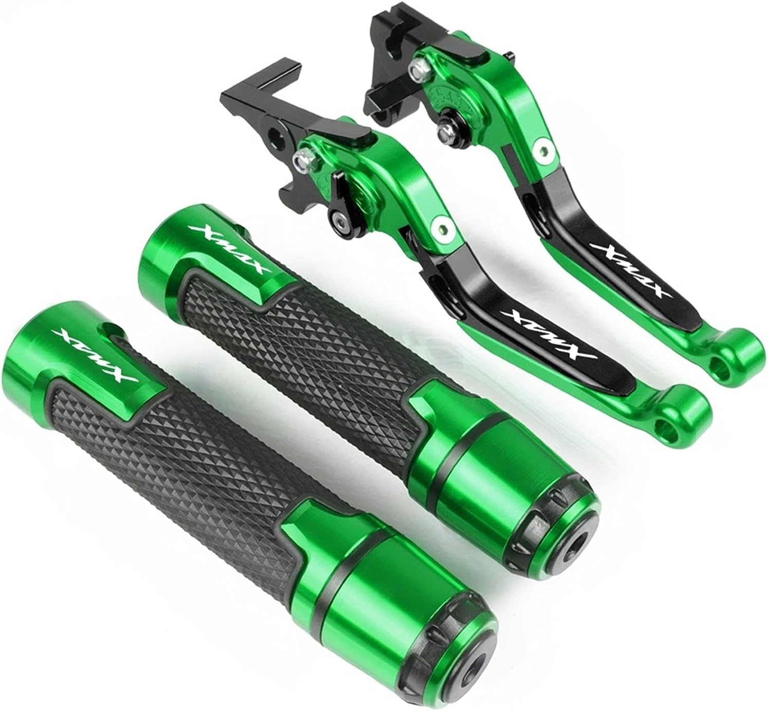 Motorcycle Accessories Adjustable Folding Extendable Brake Clutch Lever Handlebar Hand Grips Cap CNC For Yamaha XMAX 125/200/250/300/400 2014-2019product description★ Motorcycle Folding Extendable Brake Clutch Levers★ "foldable" mainly works on broken protection when the bike going to crash, ★ it can fold up automatically to decrease the least the damage to your bike.★ you can adjust the length according to your preference,longer or shorter.<;; Comfortable: with 6061-T6 aluminum by CNC, delicate appearance, strong metal texture, match your motorcycle<;; Quantity: 1 pair <;; Colour:As picture shown 8 colors (With Laser XMAX)<;; Feature: Extendable & Folding.6 position adjuster allows you to easily adjust your lever reach for the most comfortable position.<;; Extendable: Approx 3cm<;; Foldable: 90 degrees<;; Surface : Hard Anodized Motorcycle grips are made of CNC machined aluminum alloy with non-slip rubber grips, sturdy and durable, anti-rust and low temperature resistance. It is not easy to crack and fade, and the quality is reliable.<;; Suitable For: For Yamaha XMAX 125/200/250/300/400 2014-2019<;; Package Contents:Lever x 2 ( 1 Brake lever & 1 Clutch lever)and1 pair of motorcycle gripsThis is an aftermarket replacement part, It is used to replace or repair purpose for faulty and defective issues. It is not a genuine part from manufacturer.