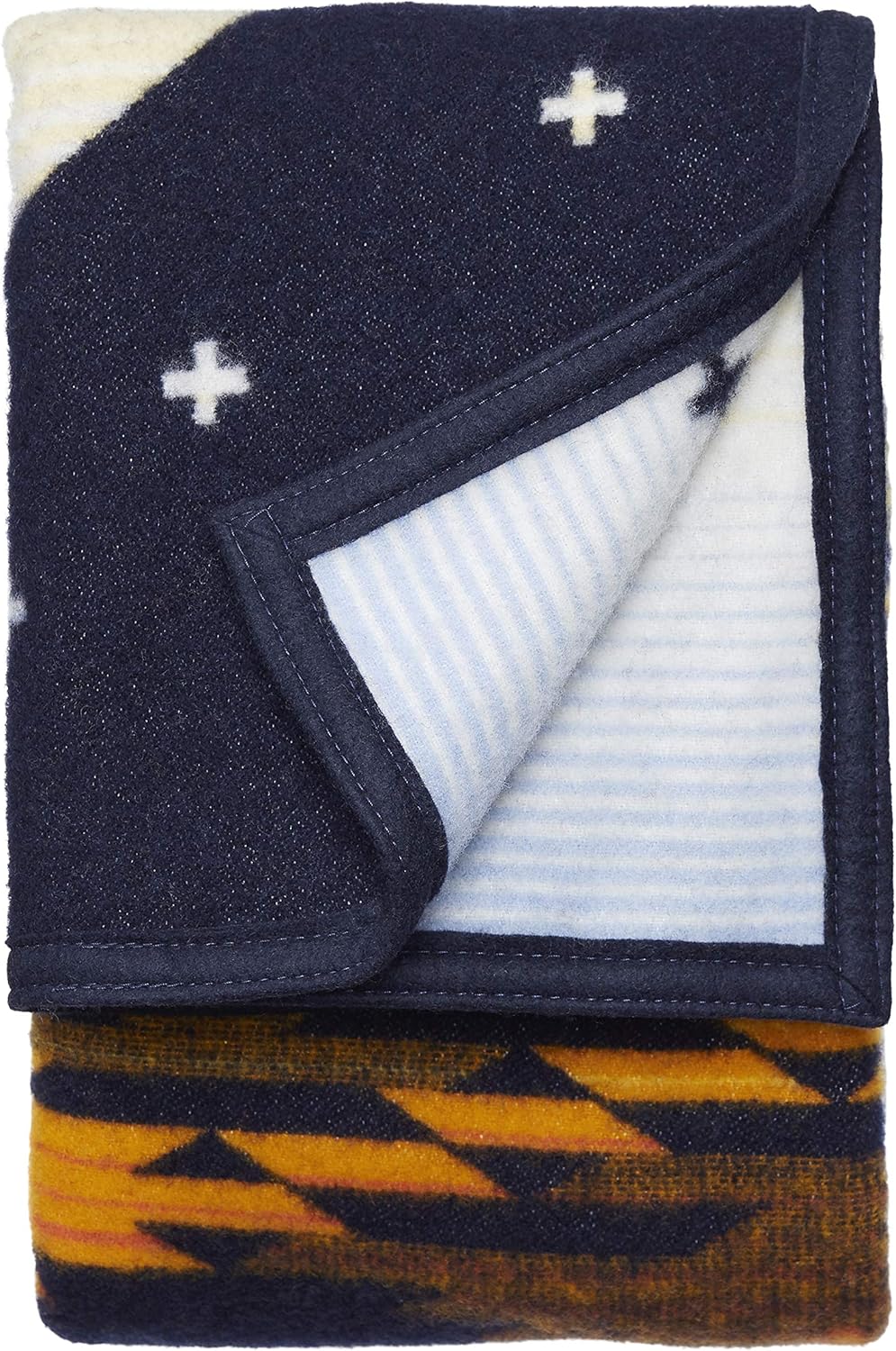 Made in America of our softest pure virgin wool, Moon Dance baby blanket is a treasured gift (and customizable with embroidery for a personal touch). Woven in a design of a desert at night, with a stallion, mare and colt galloping fast and free under the starry sky. Reverses for two different looks.