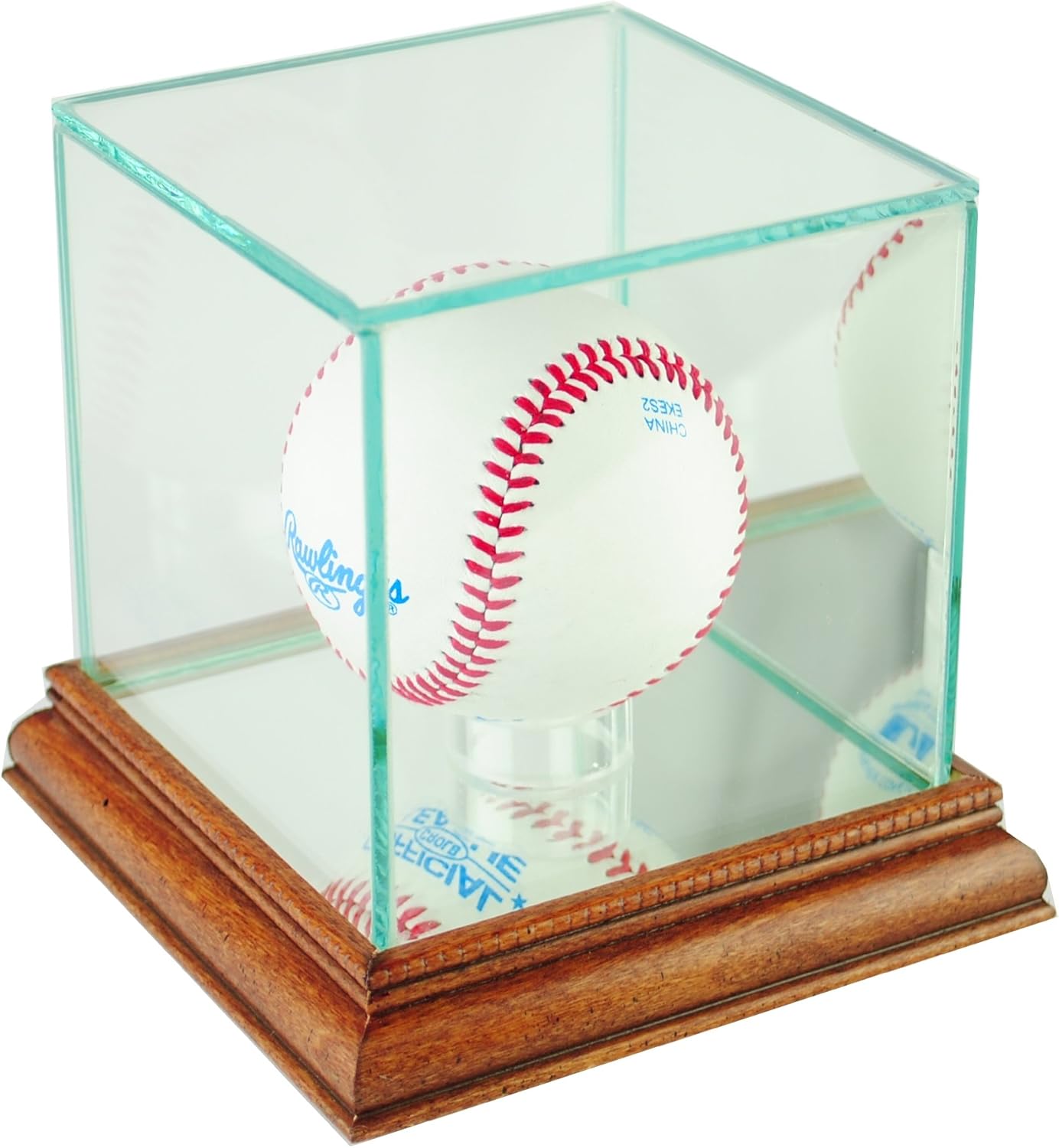 Proudly protect and display your autographed baseball bat. This baseball bat display case is made of real UV Protected glass and supported by real wood molding. This case is made with a non acidic adhesive to avoid any signature fading. It comes with two clear acrylic bat holders that can be arranged to hold your bat in either direction.
