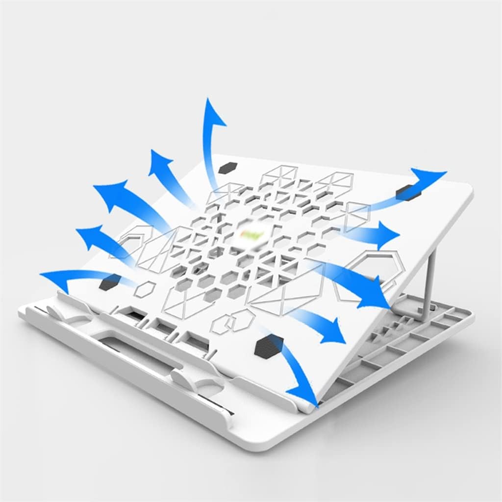 Product description:High office efficiency, stable and unshakableThe laptop is held securely and won't slip off.7-level adjustable high and low angleConcealed bezel, protective siliconeMultifunctional bracket design, not just for notebooksProduct parametersMaterial: abscolor: WhitePackage Included:1 x Laptop Cooler (other demo products not included)Notice:1. Due to manual measurement, please allow 2-3% error.2. Due to different monitors, the color may be different, please understand.Flat base allows placement anywhere. Cooling fan.