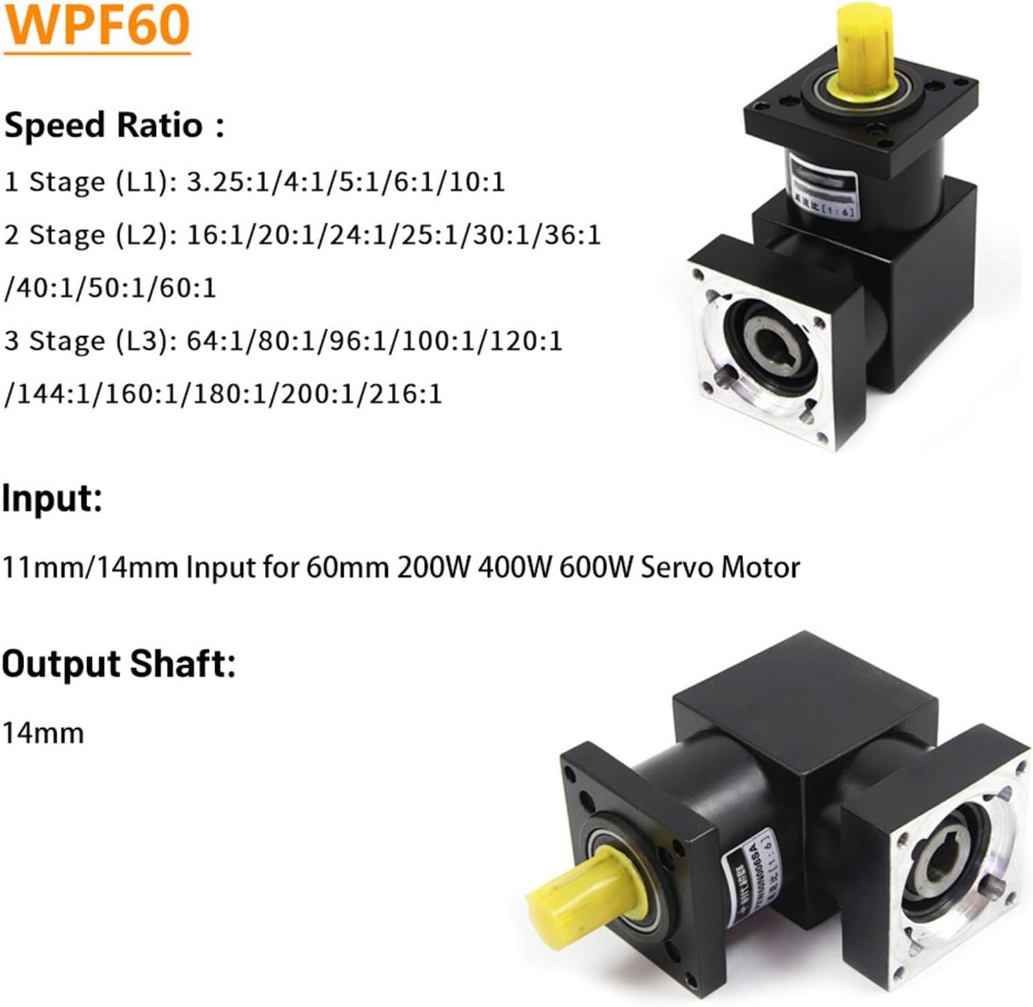 Gearboxes, Gearheads & Speed ReducersReducer Planetary Gearbox Right Angled Reducer 90 Degree Ratio 3:1-200:1 for 57/86mm Stepper Brushless Motor 60/80 Servo