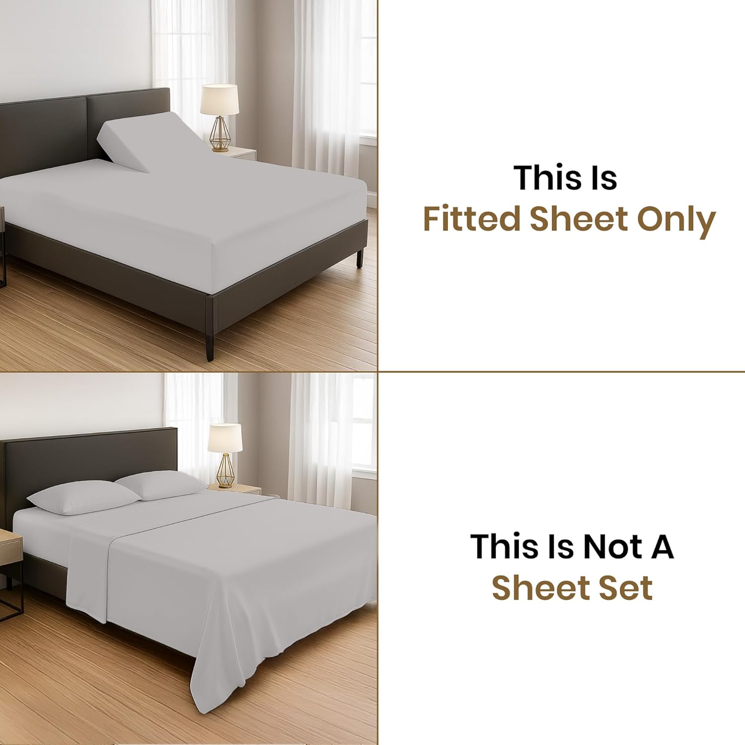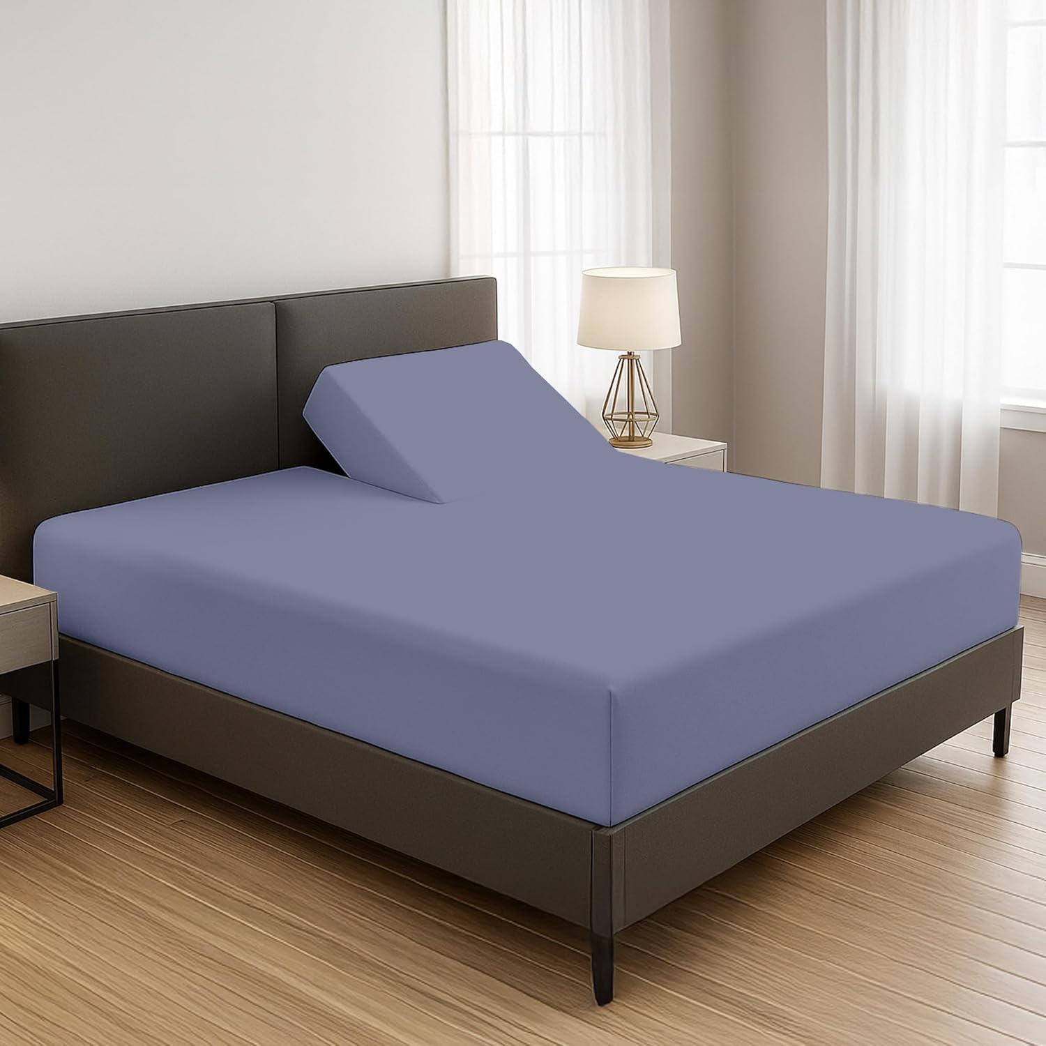 SGI bedding 34" Queen Split Top Flex Head Fitted Sheet Only – 600 Thread Count 100% Egyptian Cotton – Deep Pocket 15" Adjustable Bed Fitted Sheet – Soft, Breathable, Silver Solid
