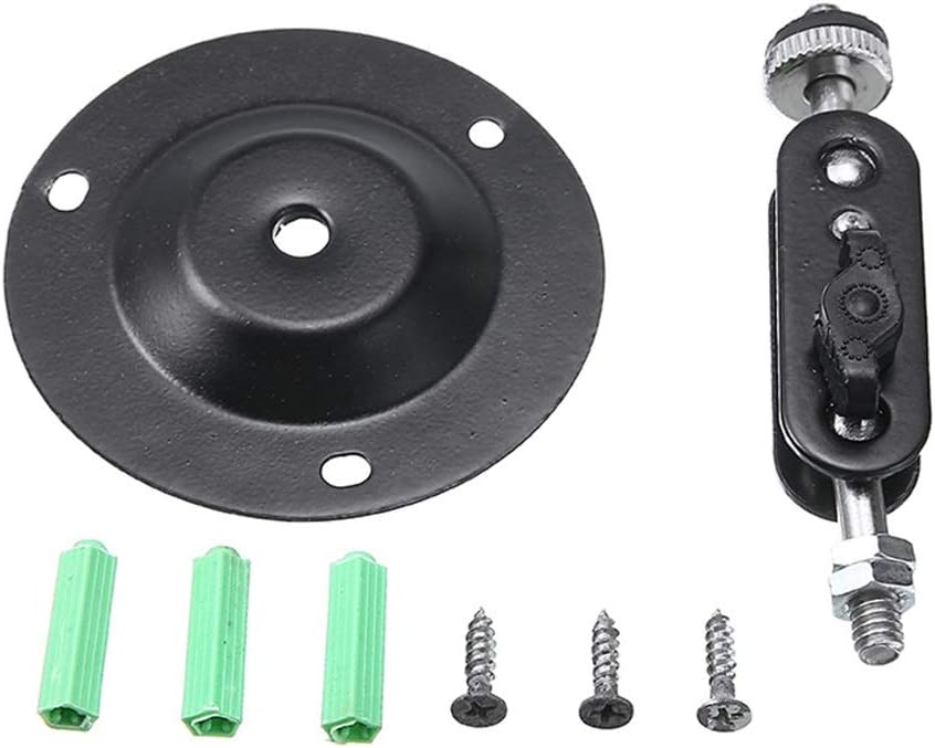 Feature: and .Made of high-strength iron, it is .It can be easily installed any wall or ceiling indoors and outdoors.It supports 360° rotation, which is very convenient to use.Suitable for fixed use of most speakers or cameras.specification:Material: IronColour: BlackSize: 80 * 95mmMaximum load: 3kgPackage Included:5 wall-mounted speaker standsnotes:Due to manual measurement, please allow small errors.For different monitors, the color may be slightly different.