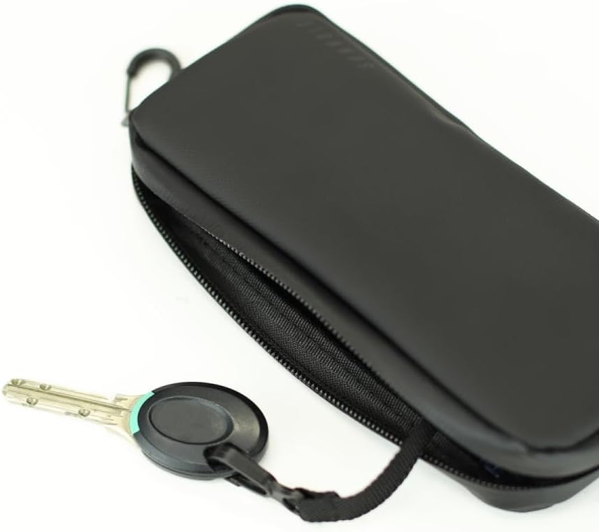 Product information: This functional pouch will neatly store small accessories for cycling. You can also store cards such as smartphones and insurance cards, bills and coins. Water-resistant zipper and sweat and water resistant material. The flexible material fits perfectly in your back pocket. Comes with a functional pocket arrangement and key ring for ease of use. Size: Approx. 7.5 x 3.8 x 0.8 inches (19 x 9.7 x 2 cm). *Not completely waterproof.