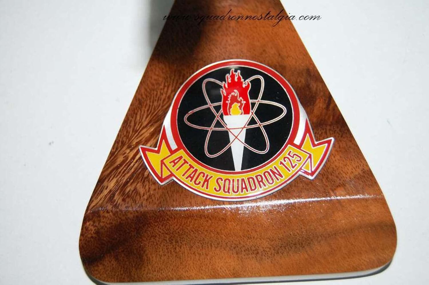 VA-125 Rough Raiders A-4E ModelFly with the second VA-125 Rough Raiders in this handcrafted A-4E model. Each piece is carved from wood and hand painted to provide a piece you’ll love.Dictionary of American Naval Aviation Squadrons Volume 1: Established as Attack Squadron TWENTY SIX (VA-26) on 30 June 1956. Redesignated Attack Squadron ONE HUNDRED TWENTY FIVE (VA-125) on 11 April 1958. Disestablished on 1 October 1977. The second squadron to be assigned the designation VA-125.The squadron’s first insignia was approved by CNO on 18 December 1956. Colors for the cougar insignia were: a dark blue background outlined in black; white scroll outlined in black with black lettering; white stars; the cougar’s face was brown and white with black markings; the lightning bolt whiskers were yellow and outlined in black; the tongue and inside of the mouth were red. When the squadron’s mission was changed, a new insignia was approved by CNO on 13 May 1959. Colors for the torch of learning insignia are unknown.Nickname: Skylanchers, 1956–1958 Rough Raiders, 1958–1977.11 Apr 1958: The squadron’s mission was changed from air-to-ground/surface attack to the indoctrination and training of pilots and enlisted personnel in attack aircraft for assignment to combat carrier squadrons. 11 Dec 1958: The squadron’s commanding officer, Commander J. E. Thomas, was killed in an aircraft accident. Mar 1960: With the addition of the A4D-2N Skyhawk, the squadron added radar and inflight refueling training to its flight syllabus. 19 May 1966: VA-125 was the first squadron in the Navy to receive the TA-4F Skyhawk. Jun 1966: The first of several groups of Australians arrived for training by the squadron on the A-4 Skyhawk. The pilots were to form the nucleus of Australia’s first A-4 squadron scheduled for assignment to HMAS Melborne (R-21). 13