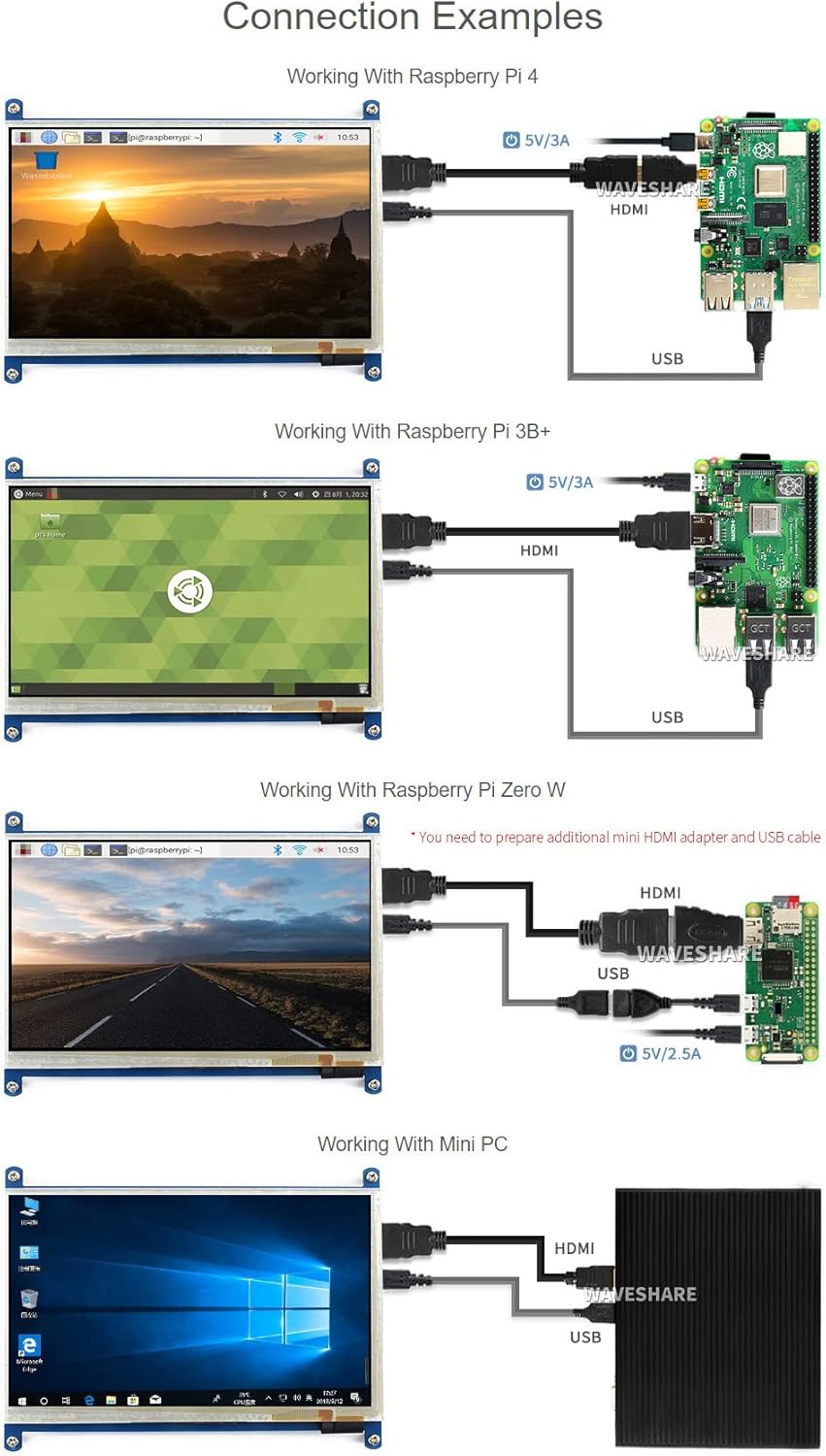 waveshare Capacitive Touch Screen HDMI LCD 7inch Type B Without Back Case Compatible with Raspberry Pi 4B/3B+/3B etc. Support PC Windows 11/10/8.1/8/7
